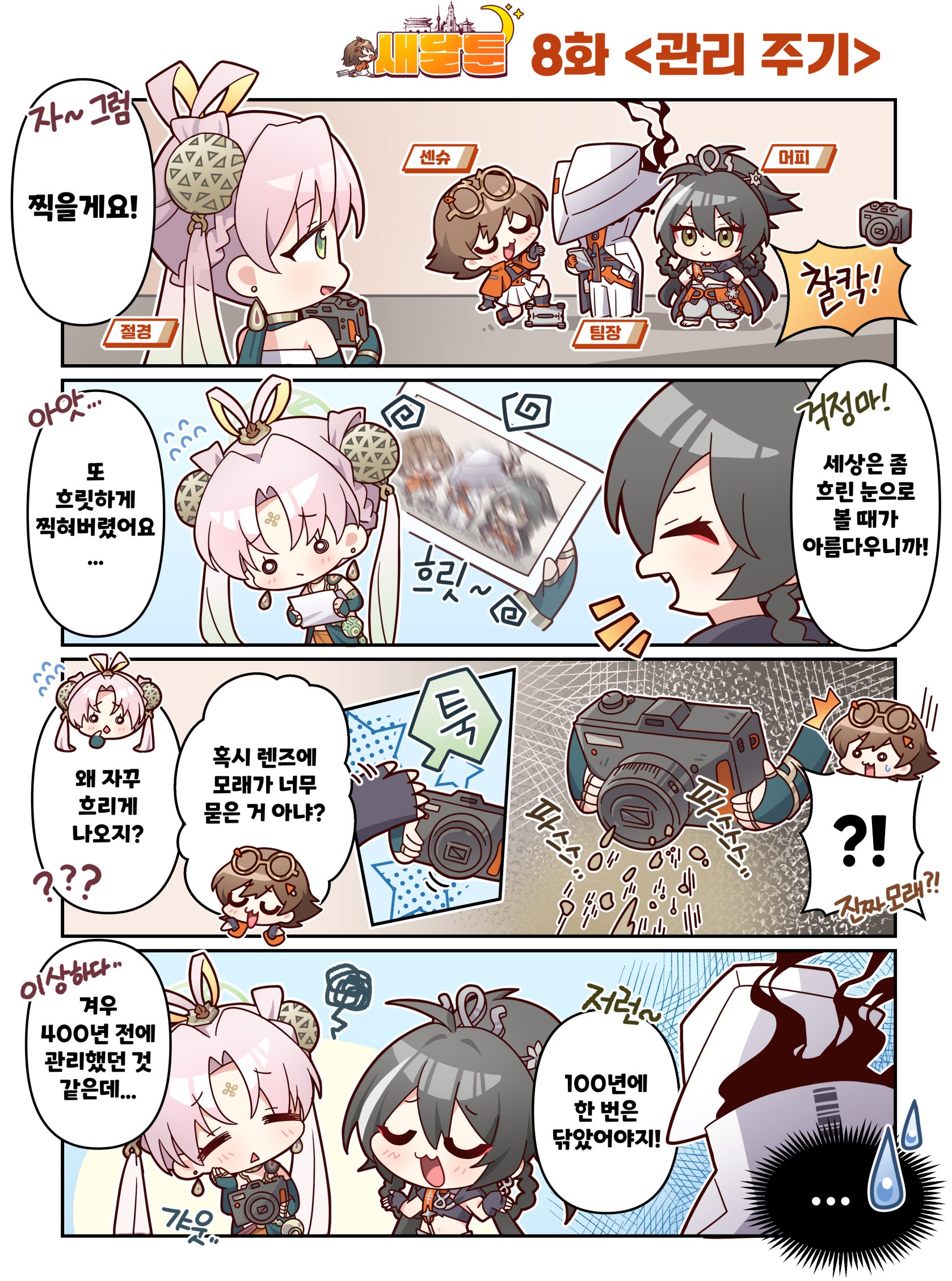 새달툰🌙 #8 : 관리 주기2025-10-16《신월동행》 새달툰🌙 #8 : 관리 주기 수콩 작가님 절경의 카메라로 사진을 찍는 머피, 센슈와 팀장님! 그런데 자꾸 사진이 흐릿하게 나오는데... 카메라에 문제가 생긴 걸까요? 새달툰에서 확인해 보세요! 이전화면