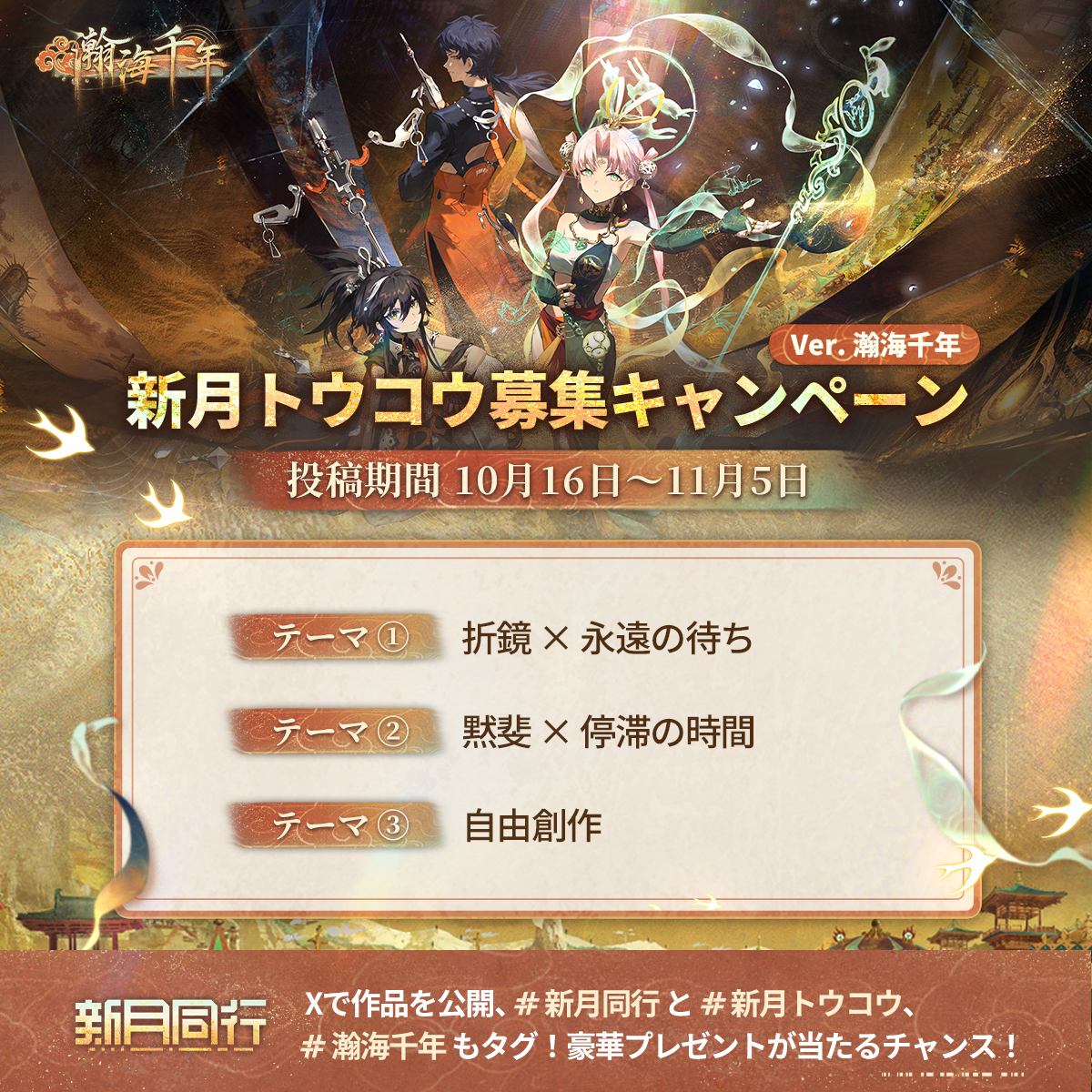 このたび、Ver.4アップデート 『瀚海千年』 を記念して、『新月トウコウ』ファンアートコンテストを開催いたします!